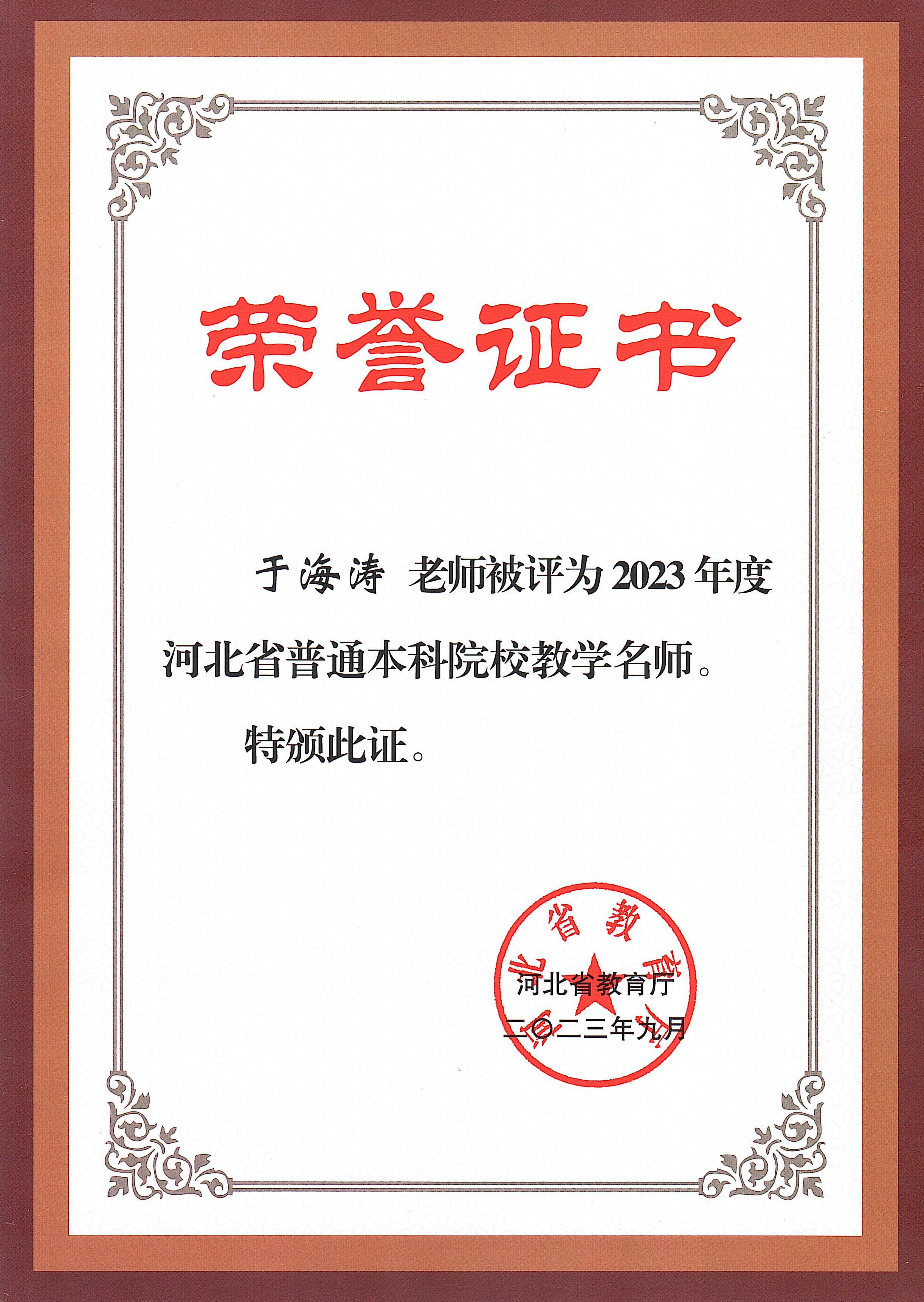河北省教学名师、优秀教学团队、省管优秀专家